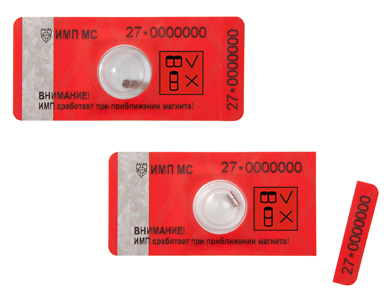 НОМЕРНОЕ АНТИМАГНИТНОЕ ПЛОМБИРОВОЧНОЕ (СИГНАЛЬНОЕ) УСТРОЙСТВО ИМП МС для регистрации несанкционированного вмешательства в работу приборов учета (счетчиков электроэнергии, воды, газа, тепла и др.) путем воздействия внешним магнитным полем, достаточным для остановки прибора учета или искажения его показаний.
