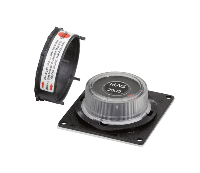 Маг 2000 — многоразовый индикатор, регистрирующий ударные воздействия (падения, столкновения, тряску) на крупногабаритные грузы весом от 135 кг (грузовые контейнеры, ж/д вагоны, автомобили и др.). Влагонепроницаем, устойчив к воздействию растворителей, кислот и нефтепродуктов. Применение Маг 2000 особенно рентабельно с возвратной тарой и на замкнутых транспортных маршрутах.