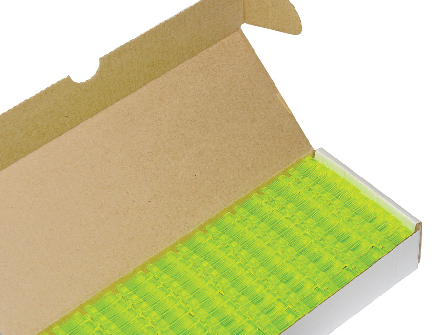 - 10 блоков по 10 штук в маленькой коробочке — удобно использовать и вести номерной учет.